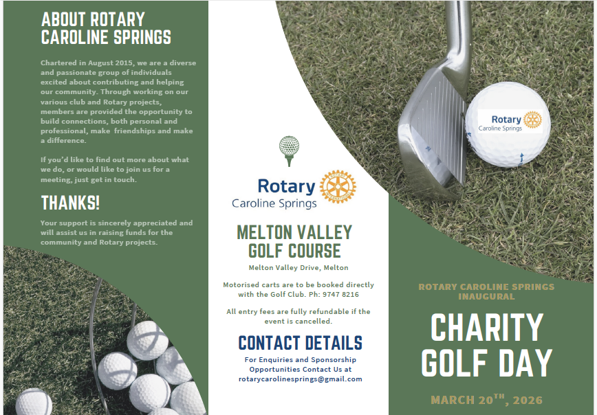 We are thrilled to announce that Rotary Caroline Springs is gearing up for our Inaugural Charity Golf Day — and it’s coming up fast!